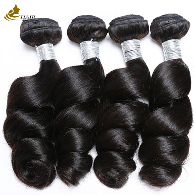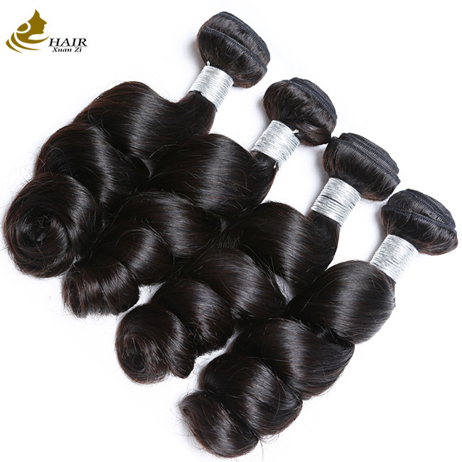 الشعر البشري العذراء المتماشى مع الجلد 3 حزمة أمواج طبيعية سوداء فضفاضة مع إغلاق العصا الأمامية